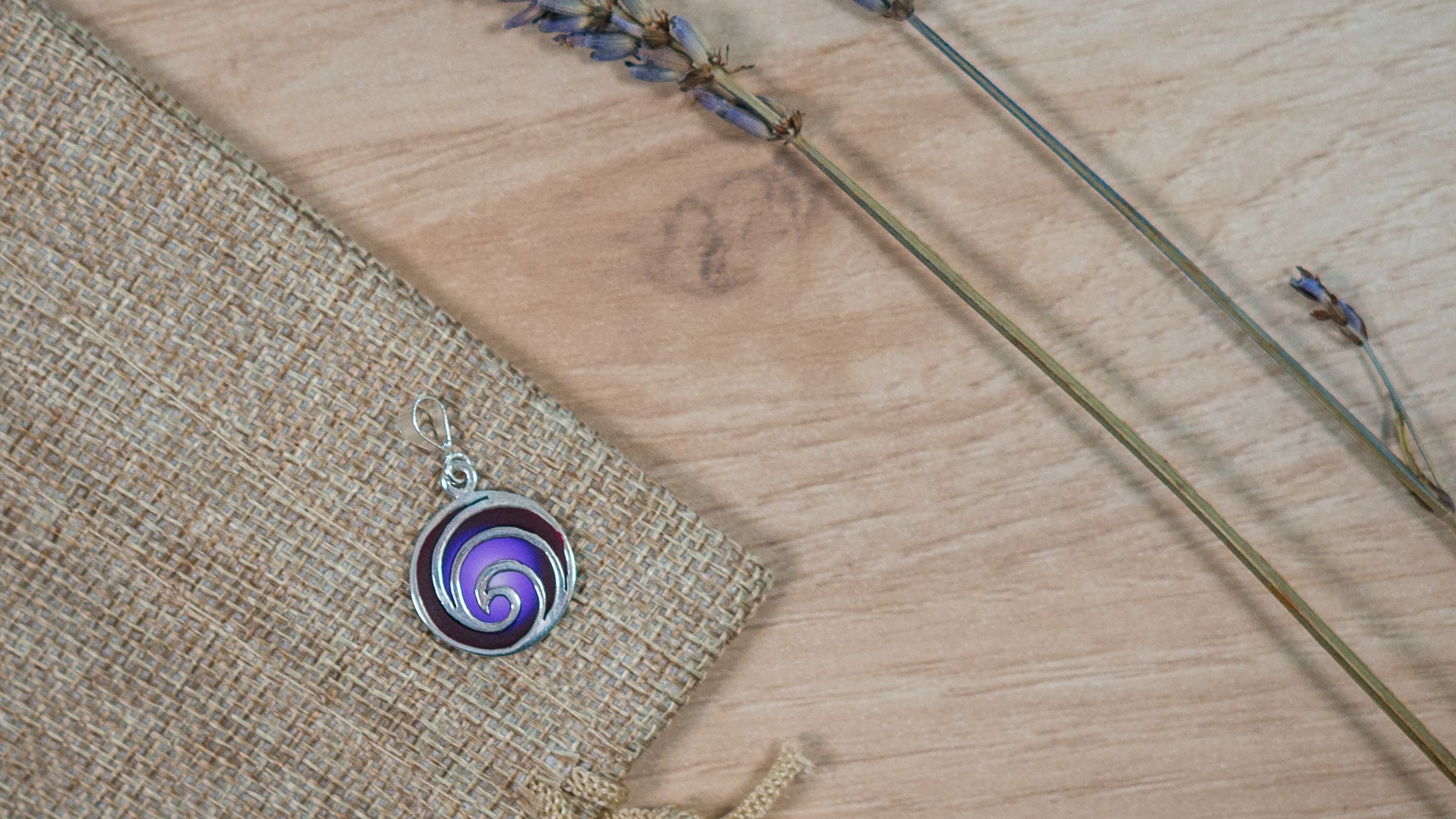 Colgante artesanal de plata con el símbolo de la espiral, un armonizador personal que te servirá de anclaje en la frecuencia de la gratitud.